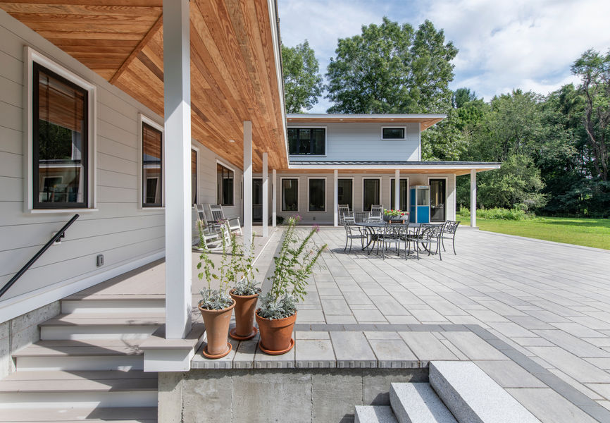 Wrap-around porches provide a welcome front entry and embrace the rear courtyard, providing a porous indoor/outdoor living space.